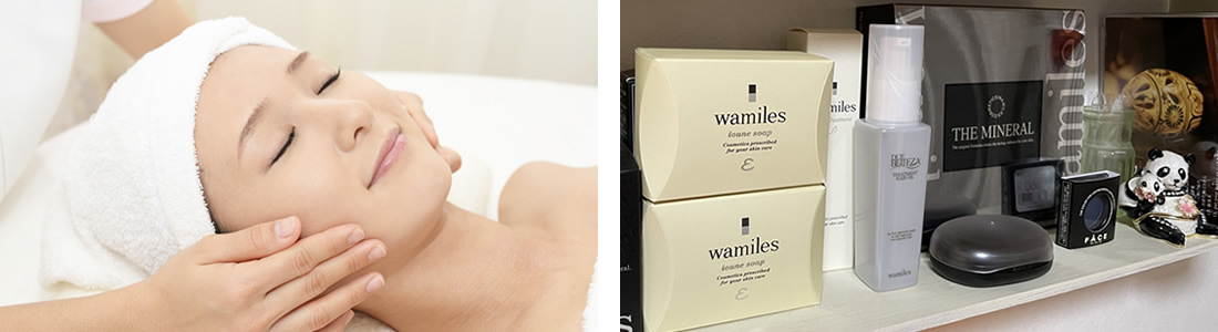 素肌をすこやかに保ち、輝きを導き出すスキンケア、ワミレス化粧品を使用したエステとなっております。