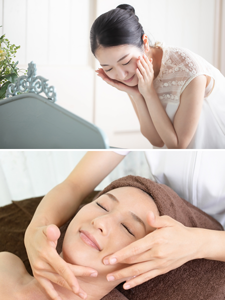 STEP 3 オールハンドで施術天然のミネラルエッセンスを与えながら、指のみでクリームと共に老化角層を取り除きます